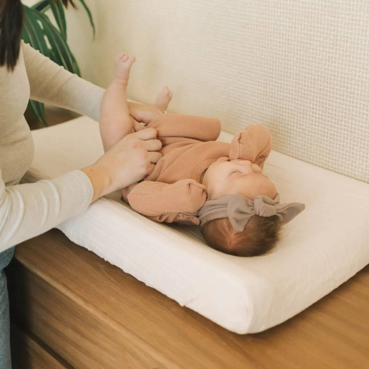 These beautiful changing pad covers from Little Unicorn fit a standard size changing pad, have elastic all around for a snug fit, get softer with each wash and feature stitched holes to accommodate changing pad safety straps.