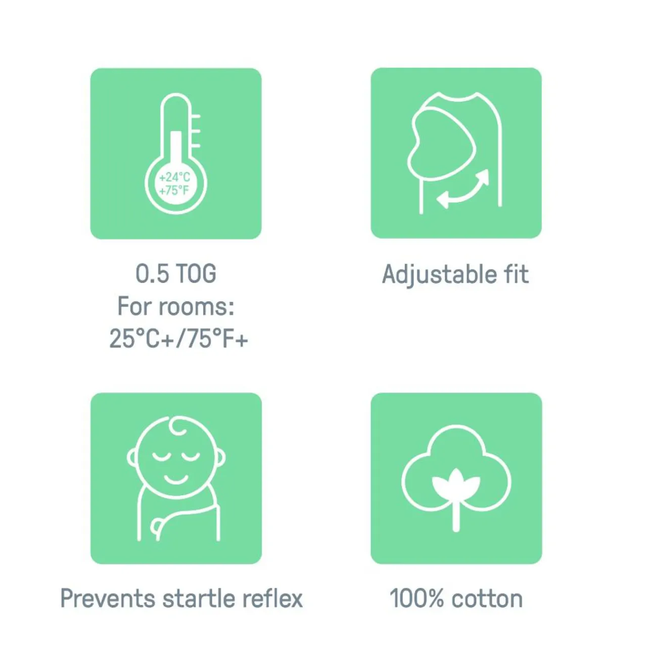 - 1.0 tog is great for room temperatures 20-25°C+