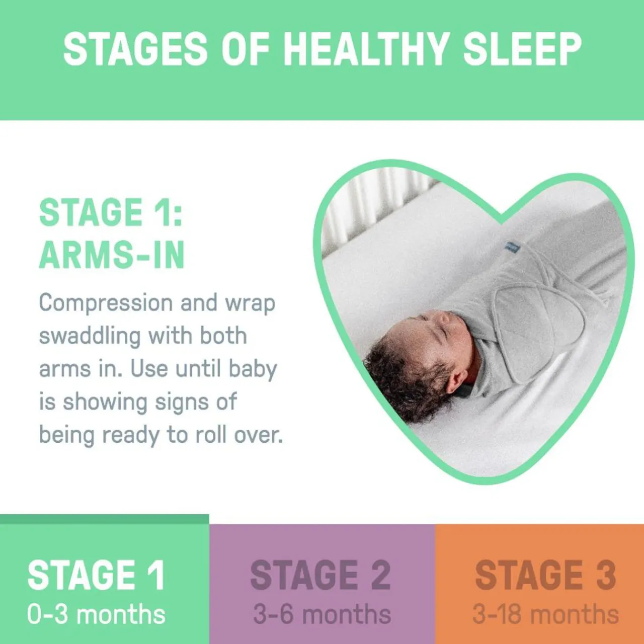 - This swaddle is part of Stage 1 in the SwaddleMe Stages of Healthy Sleep, made for newborns who aren’t rolling over yet and like to be swaddled with their arms in