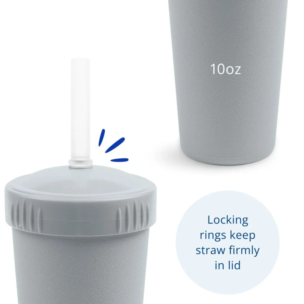 Durable, affordable and sustainable. The straw included with this cup is a reusable silicone straw with a stopper that helps keep the straw in place.