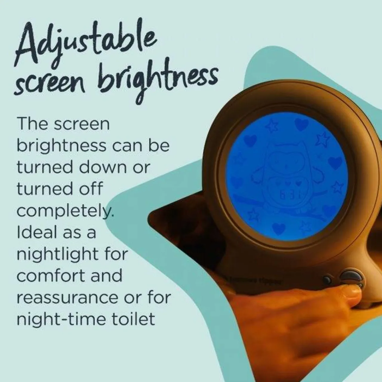 However if it is a concern and you still want the benefits of a reliable sleep trainer clock you can adjust the brightness of the screen. If you don’t want the blue light visible at all at night (e.g. your child prefers sleeping in the dark) the Groclock can be adjusted to “00” which means no light at all, right up to the brightest setting which works well as a nightlight.