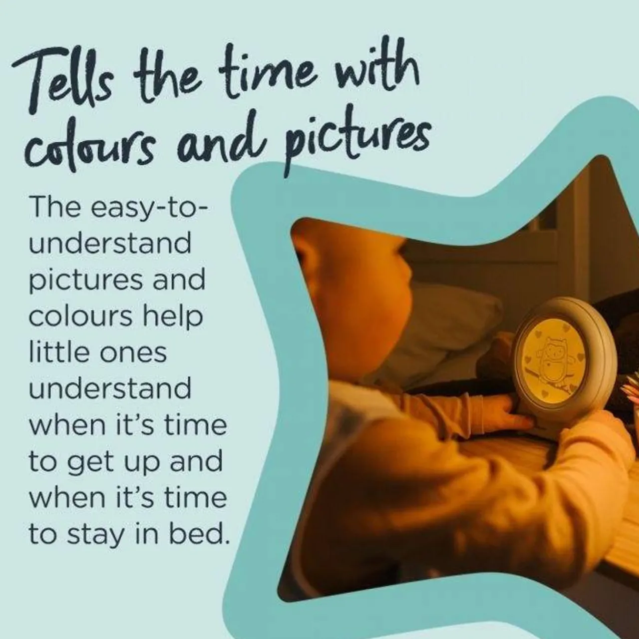 How do you get your children to understand when it’s time to get up? It’s easy- “stay in bed until the blue sleepy time stars and hearts have disappeared and the screen turns yellow. The sun will have woken up and it’s wake up time for you too.”