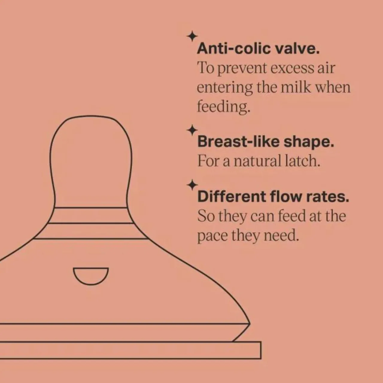 Only suitable for use with Tommee Tippee Closer to Nature feeding bottles. Includes 2 silicone teats.