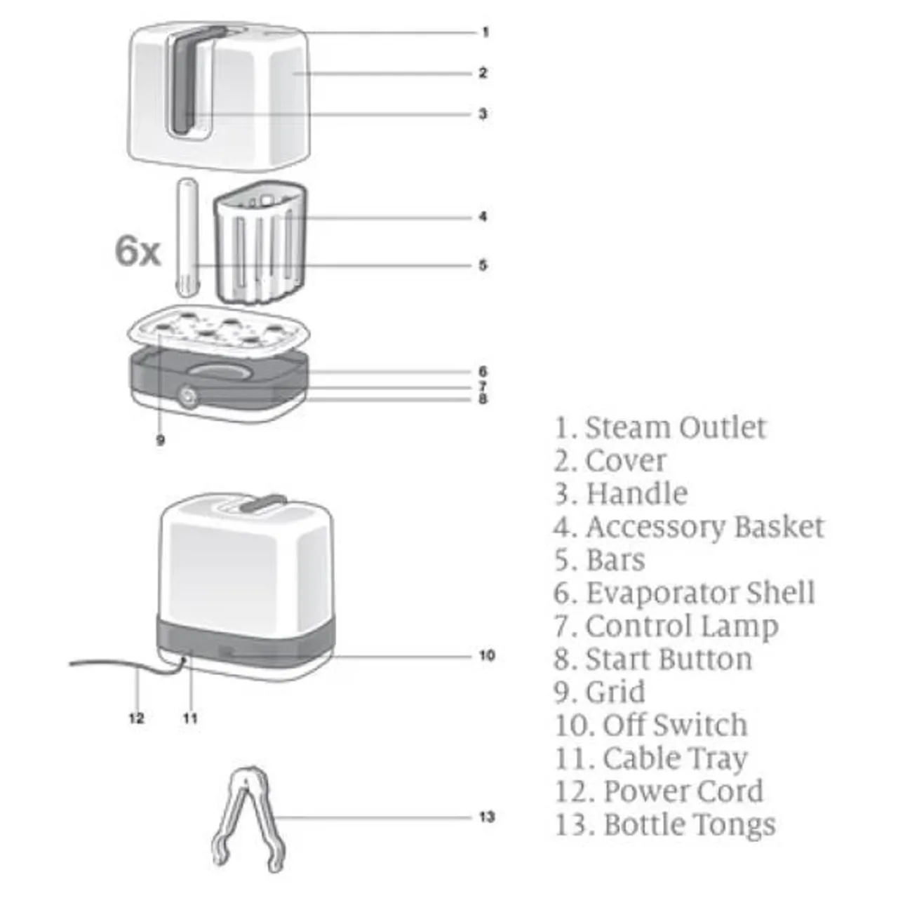 - Sterilizes 6 bottles in 6 minutes