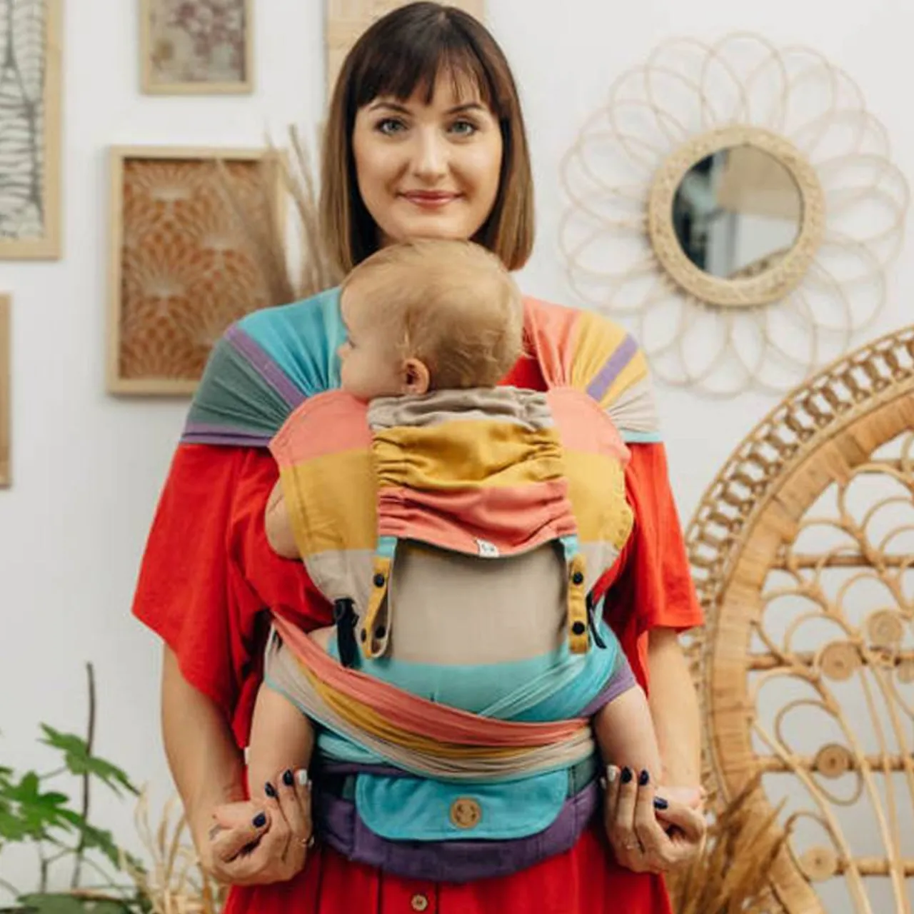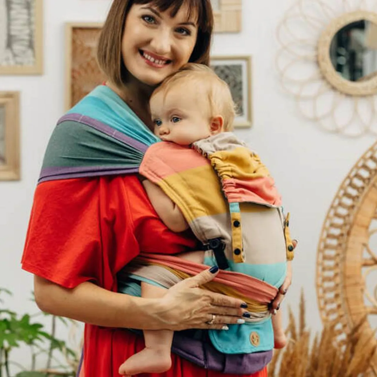 LennyHybrid Half Buckle Carrier is a unique carrier that combines the advantages of an adjustable carrier and a wrap. Thanks to its design and adjustment system it allows to achieve a correct, ergonomic position of the baby. Additionally, it has two wrap straps that stabilize the baby’s position on the sides, which makes it possible to carry a newborn baby safely. The panel adjustment makes the carrier grow with your baby.