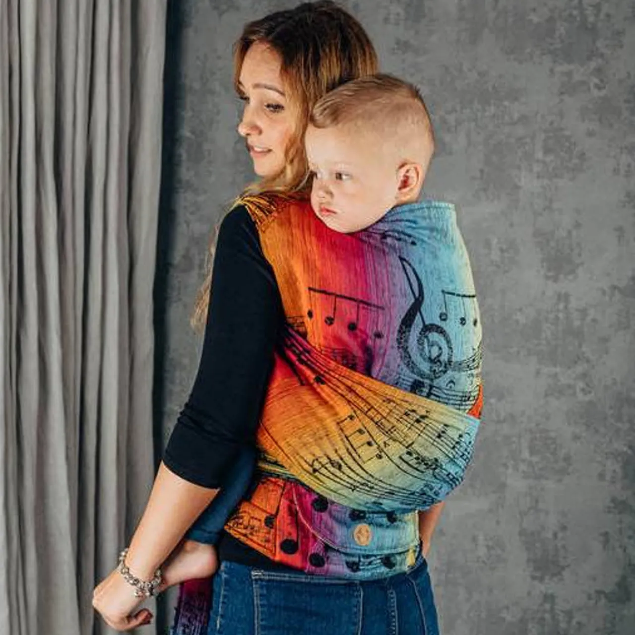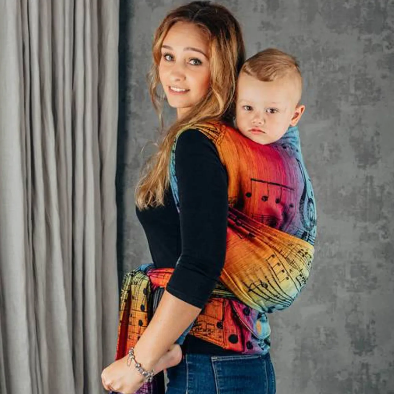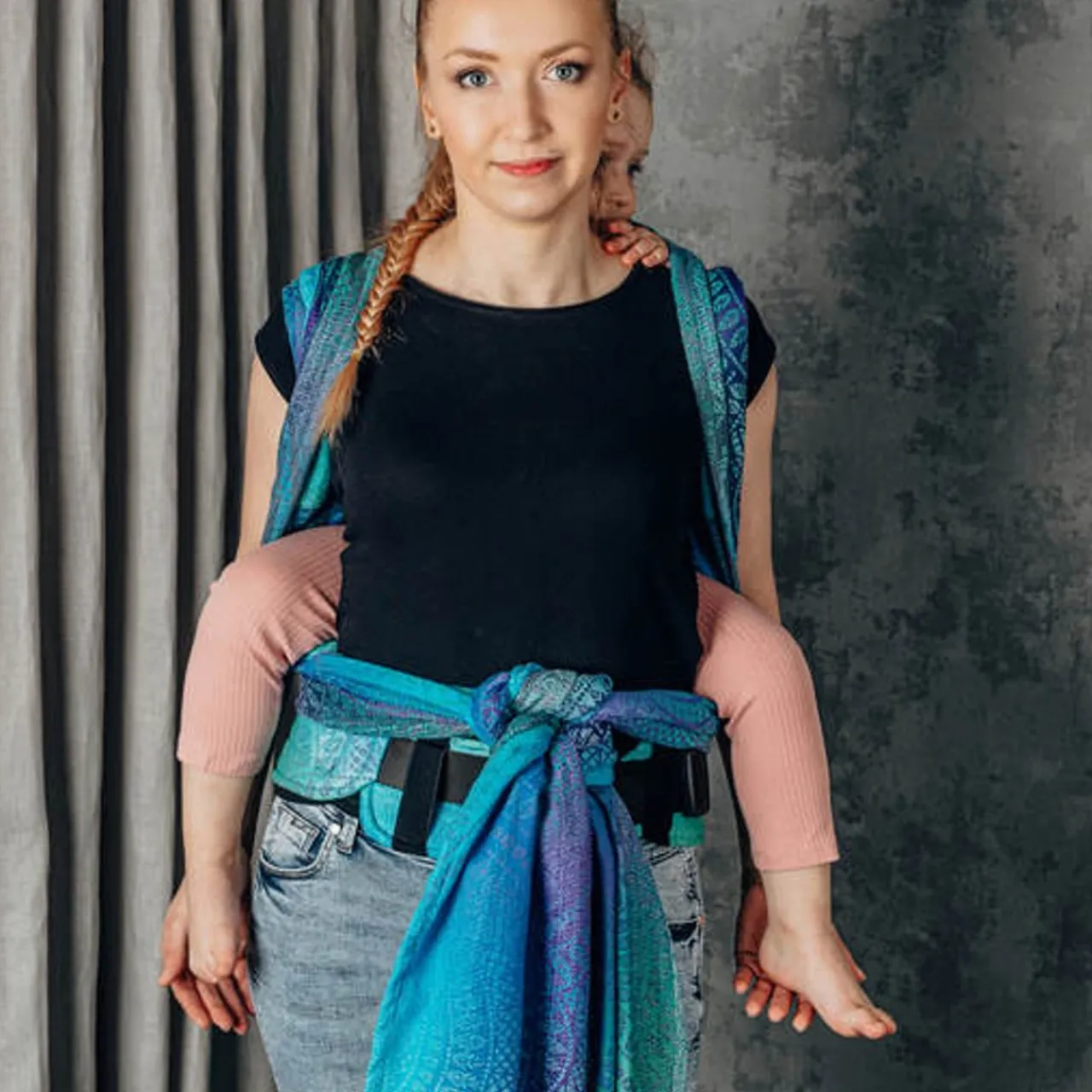 - Functionality – two wearing positions – front from birth and back from the fourth month. Adjustment of the panel and wrap shoulder straps ensure a perfect fit and correct, ergonomic position of the child at every stage of development