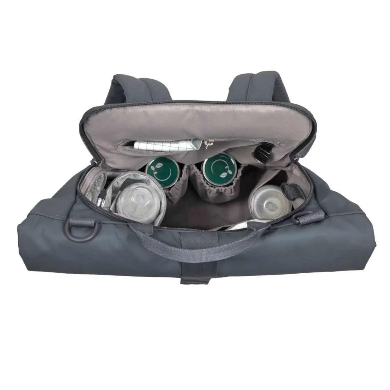 - Includes, change mat, small utensils pouch and insulated drink holder