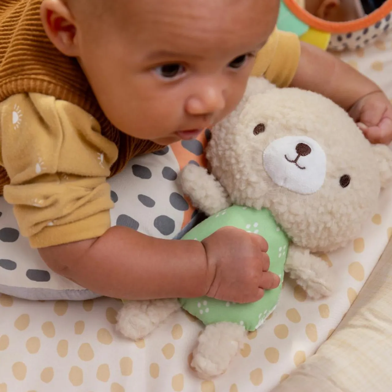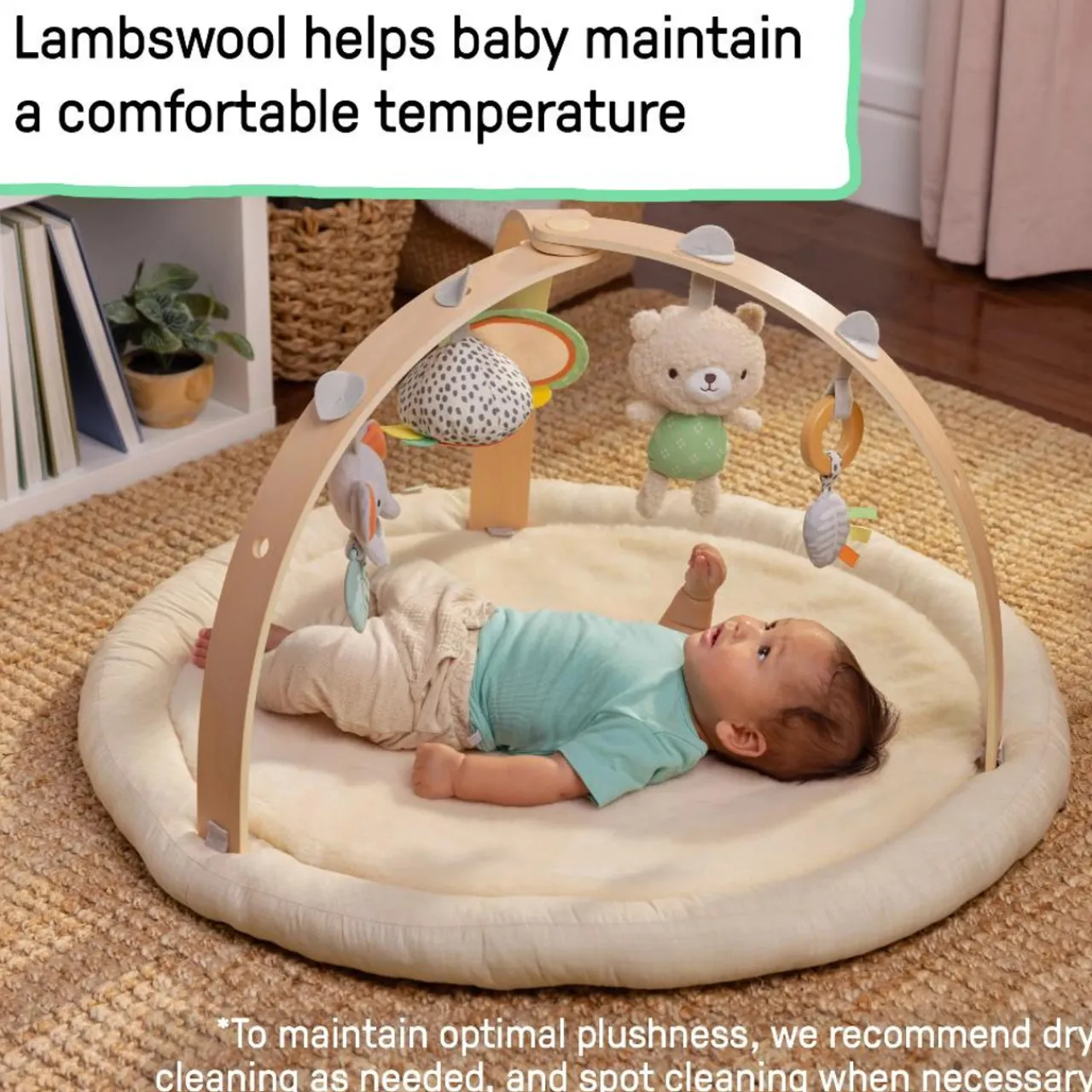 - This plush activity gym gives baby their new favorite spot to play all year long. Made with real Australian lambswool, this mat is uniquely cozy, giving baby comfort during their first few months without disrupting their body temperature