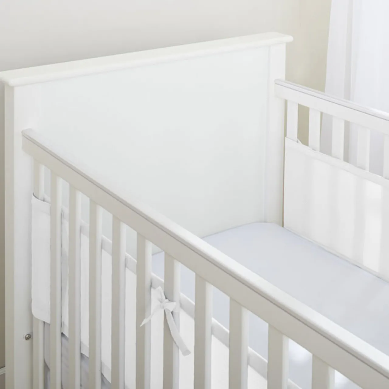 2-sided Breathable Mesh Cot Bumpers fit all cots with solid ends.