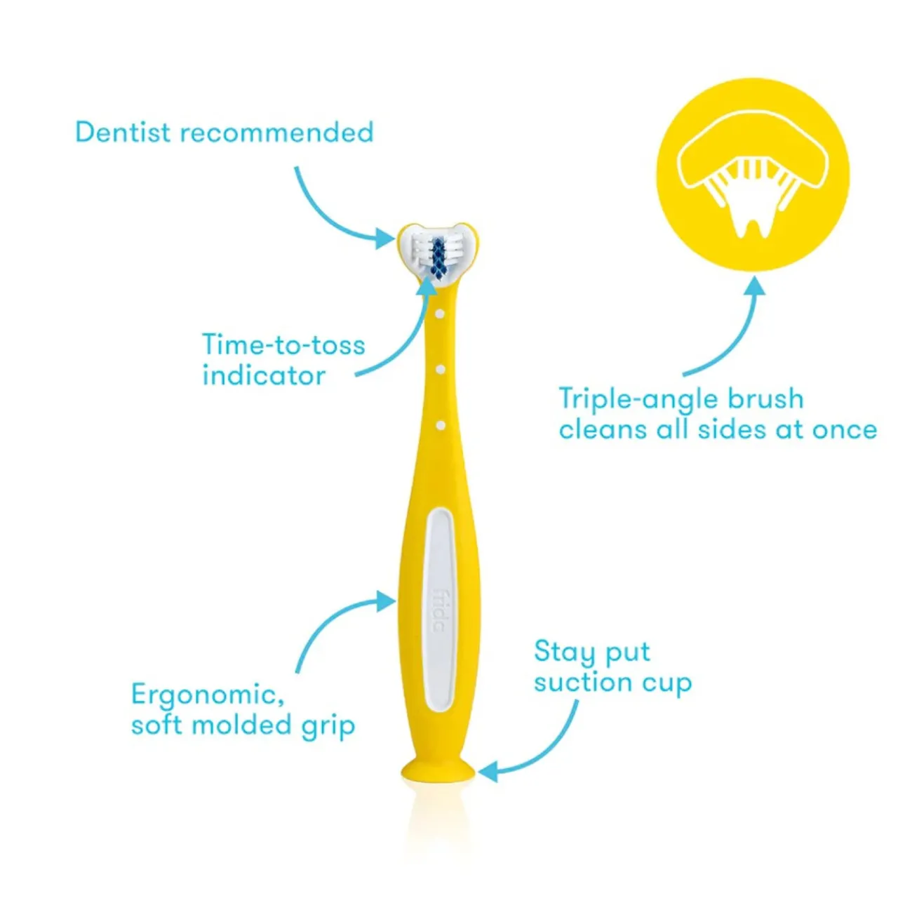 - Triple angle head brushes all side of tooth at once